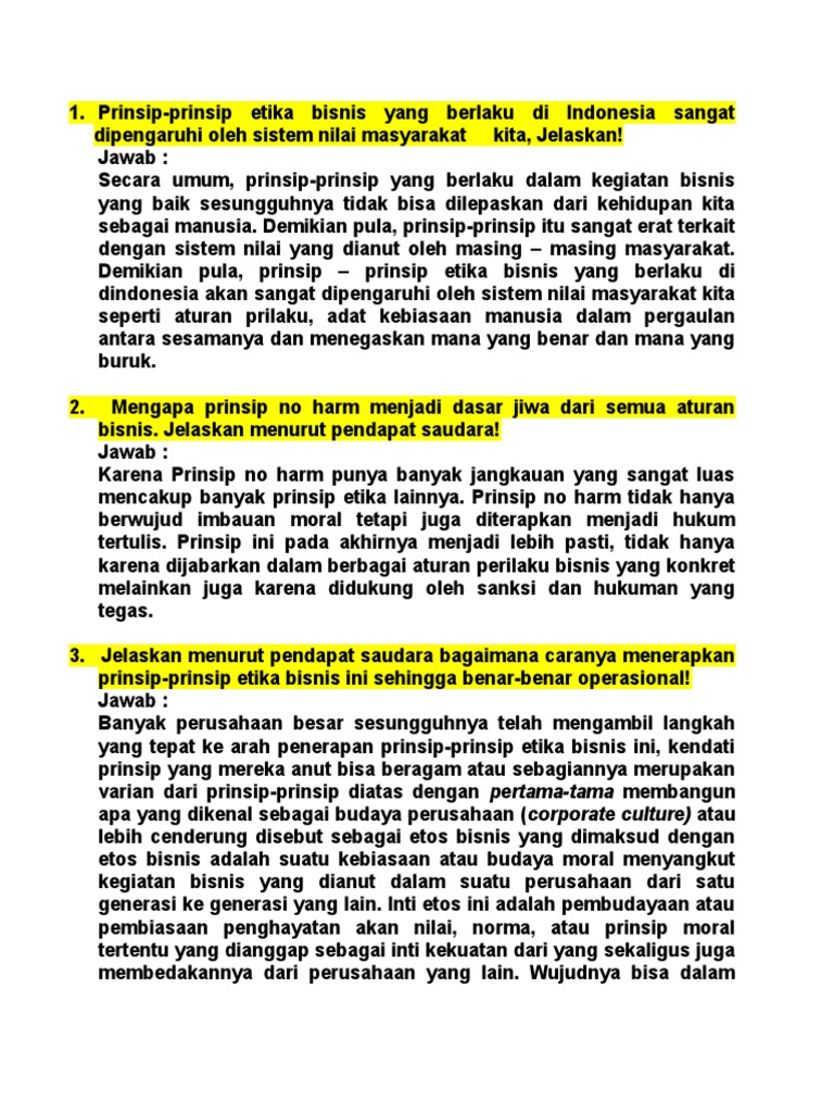 Prinsip etika dalam bisnis terutama pada aspek; Etika, suatu norma atau aturan yang dipakai sebagai pedoman dalam berperilaku di masyarakat bagi seseorang terkait dengan sifat baik & buruk. Soal uts etika bisnis 01 nov. Kadang makanan utama pun lolos dari ingatan. Skill yang harus dimiliki tingkatan manajer 6.