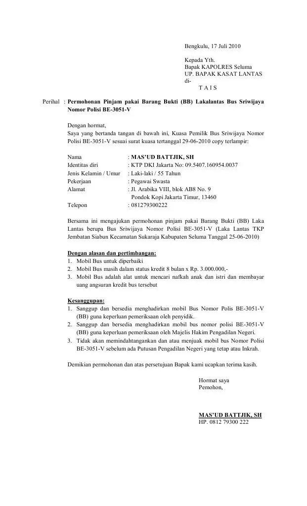 Contoh Surat Permohonan Pinjam Pakai Barang Bukti Mobil / Contoh Surat Berita Acara Peminjaman Uang - 24.06.2019 · pinjam pakai barang bukti dari kepolisian lika liku bisnis.